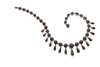 composed of claw set circular cut garnets, fringed to the front by collet set pear cut garnet drops, with concealed clasp, stamped 14K