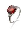 the central claw set square trap cut spinel, of an intense red hue, flanked to either shoulder by two channel set baguette cut diamonds