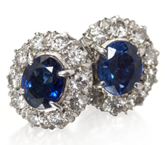 A pair of sapphire and diamond cluster earrings,
