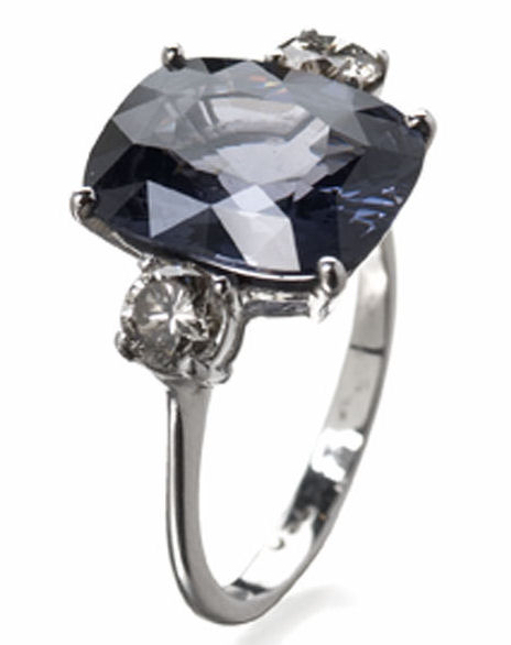 A violet-blue spinel and diamond set ring,
