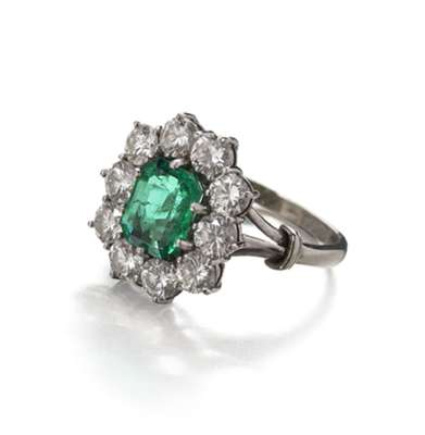 Estimated weights: emerald 1.35cts; diamonds 1.50cts total