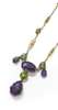 composed of filigree decorated oval and small belcher links, claw set to the front with graduated circular, oval and pear cut amethysts and peridots and two round brilliant cut diamonds