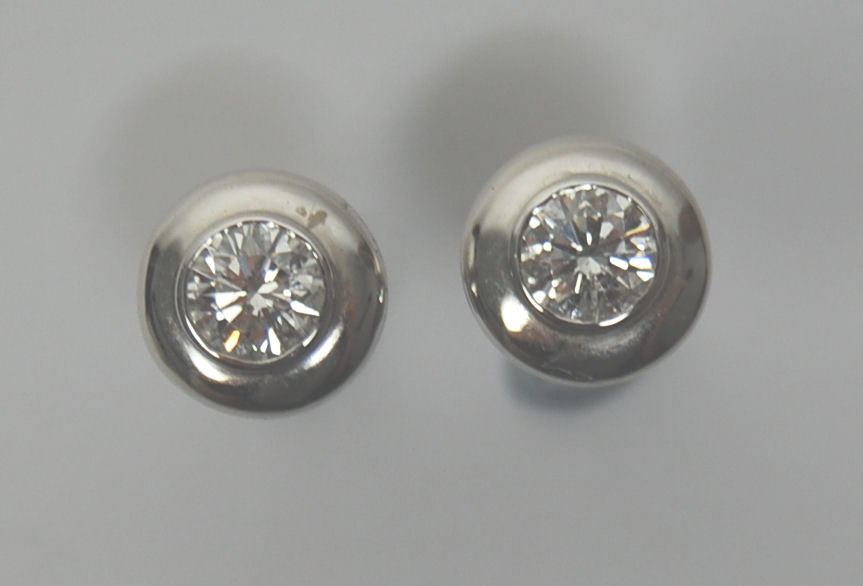 each collet set with a round brilliant cut diamond, within a broad plain bezel