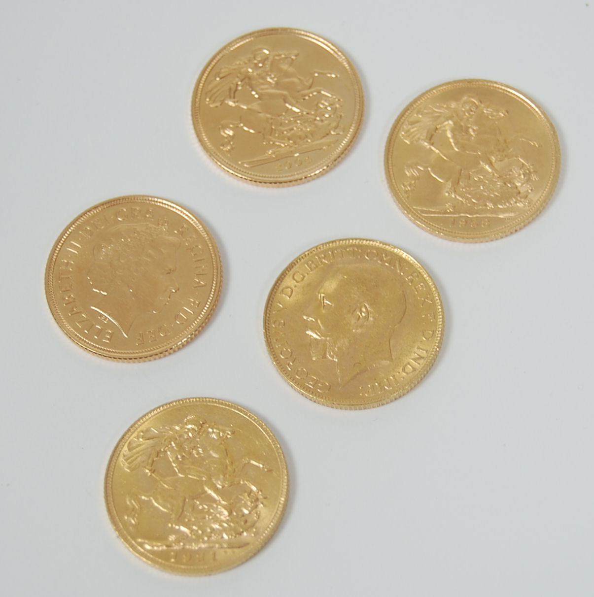 1958 EF; 2004 EF; 2008 EF; together with two George V examples, 1920 and 1921 P both GVF (5)