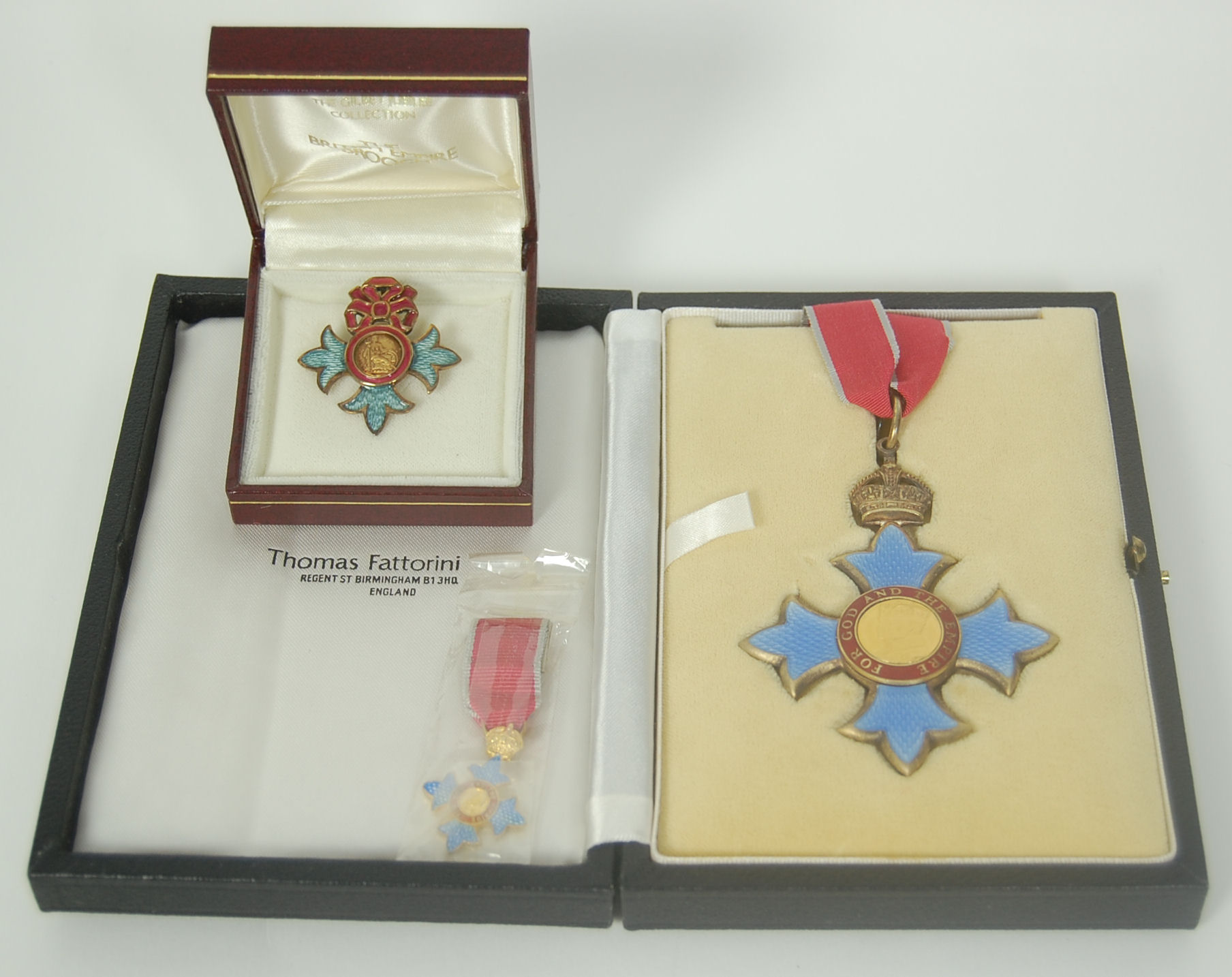 of conventional form in fitted Thomas Fattorini box; with matching miniature and cased British Empire Brooch (3)