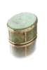circa 1770, the oval box formed from from panels of chrysoprase, with gold cage work borders and frame all engraved with reeded C scrolls and stylised flowers heads