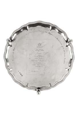 Also, engraved to the centre with a facsimile of the 50th dinner menu, and three signatures, including Neville Chamberlain