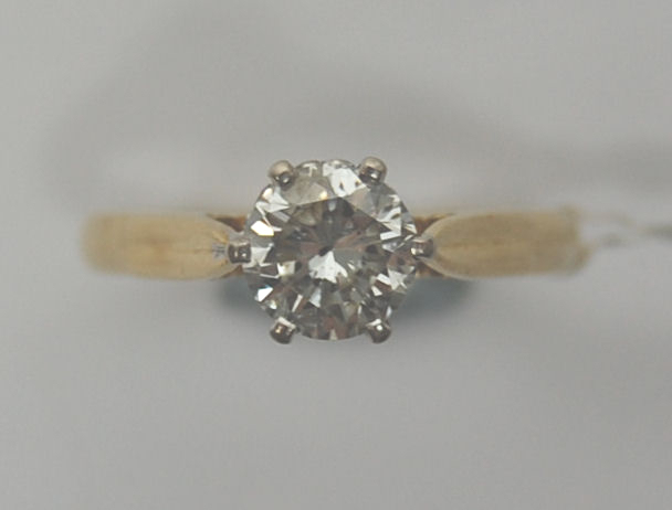 claw set with a round brilliant cut diamond