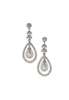 each composed of a millegrain collet set round brilliant cut diamond, surmounting similarly set foliate motifs, suspending a large ovoid cultured pearl drop, within a shaped ovoid border of graduated round brilliant cut diamonds, mounts stamped 750