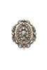 of shaped oval form, claw set throughout with graduated old mine cut diamonds, with outer scrolling border set with rose cut diamonds