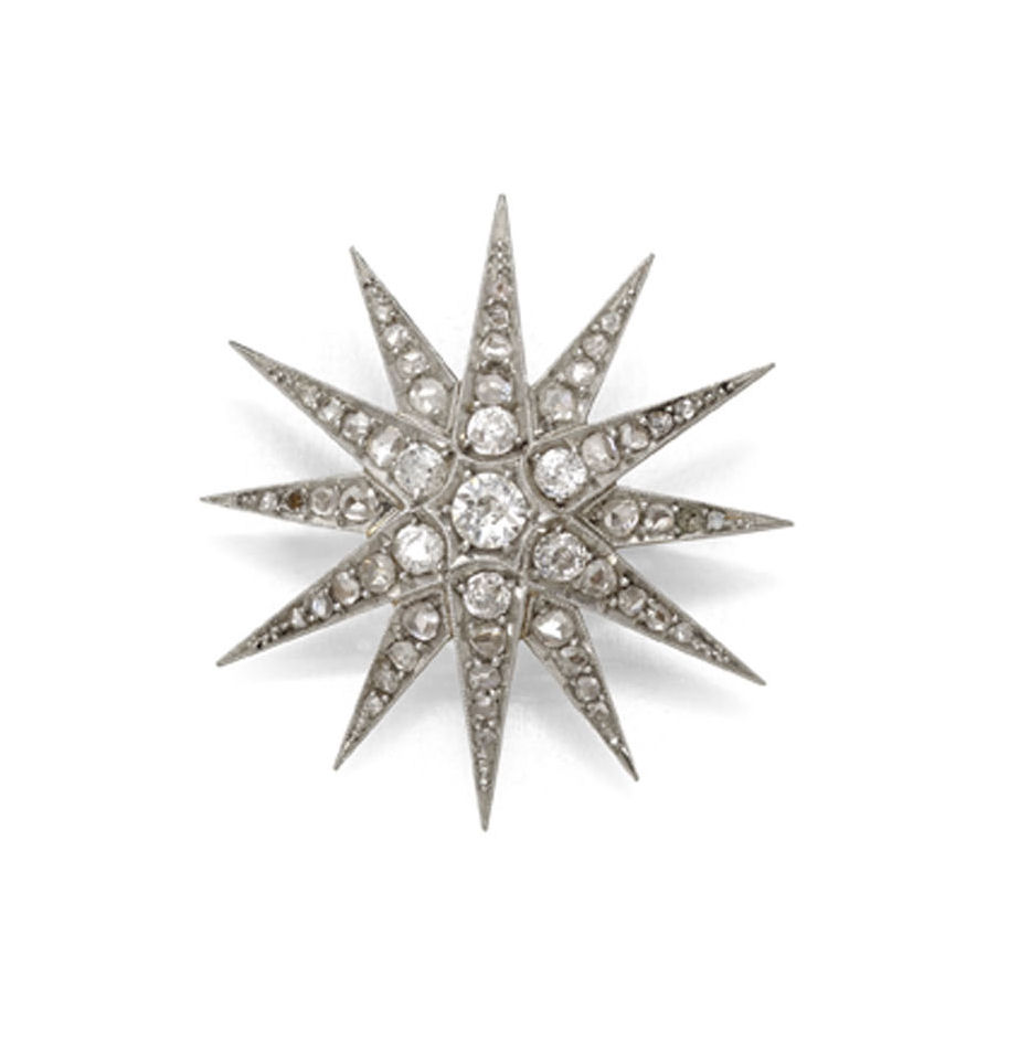 of slightly domed twelve-pointed design, set with graduated old European and rose cut diamonds