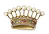 set with borders of rubies, emeralds and rose cut diamonds, with graduated pearls to the terminals, contained in a fitted case