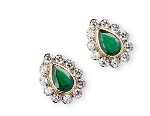 A pair of emerald and diamond set earrings,