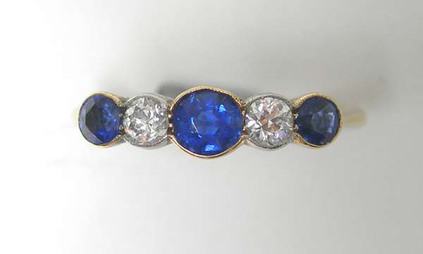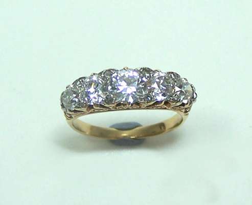 A late Victorian 18ct gold mounted five-stone ring,