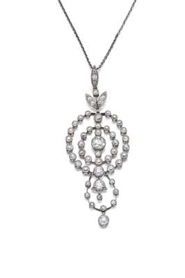 A Belle Epoque diamond set pendant with chain,
