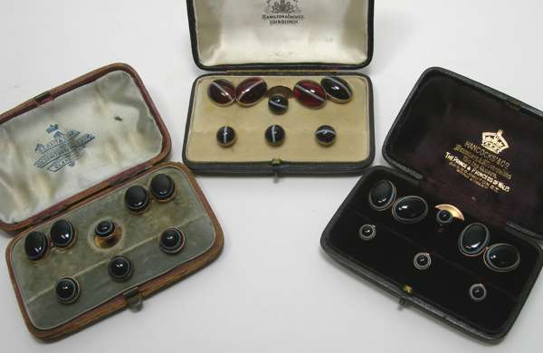 Three sard onyx gentleman's dress sets,