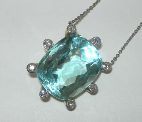 An early 20th century aquamarine and diamond pendant,