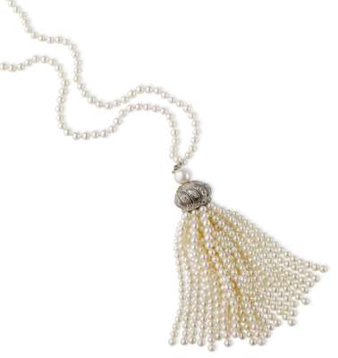 A cultured pearl and diamond set sautoir,