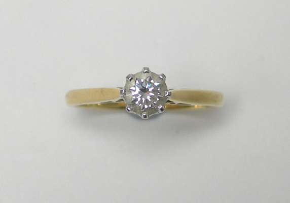 An 18ct gold mounted diamond single-stone ring,