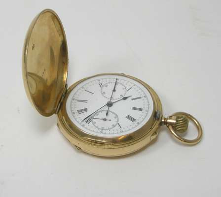 An 18ct gold hunter pocket watch and stopwatch