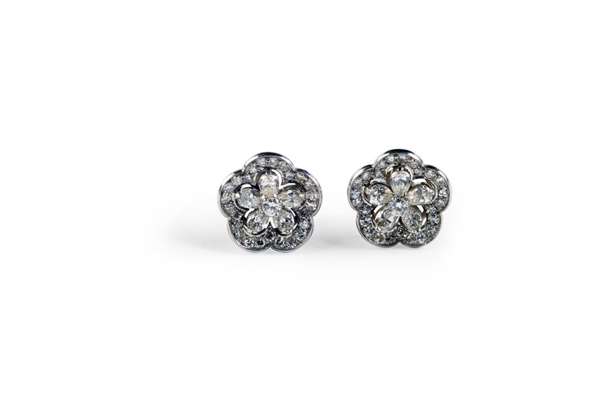 A pair of diamond floral cluster earrings,