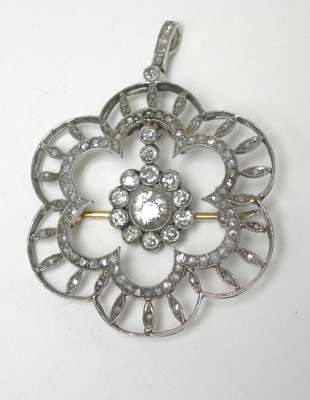 A Belle Epoque diamond set brooch/pendant,