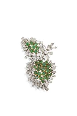 An emerald and diamond foliate spray brooch,