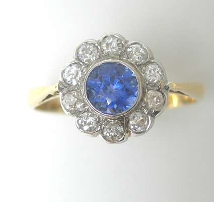 A sapphire and diamond floral cluster ring,