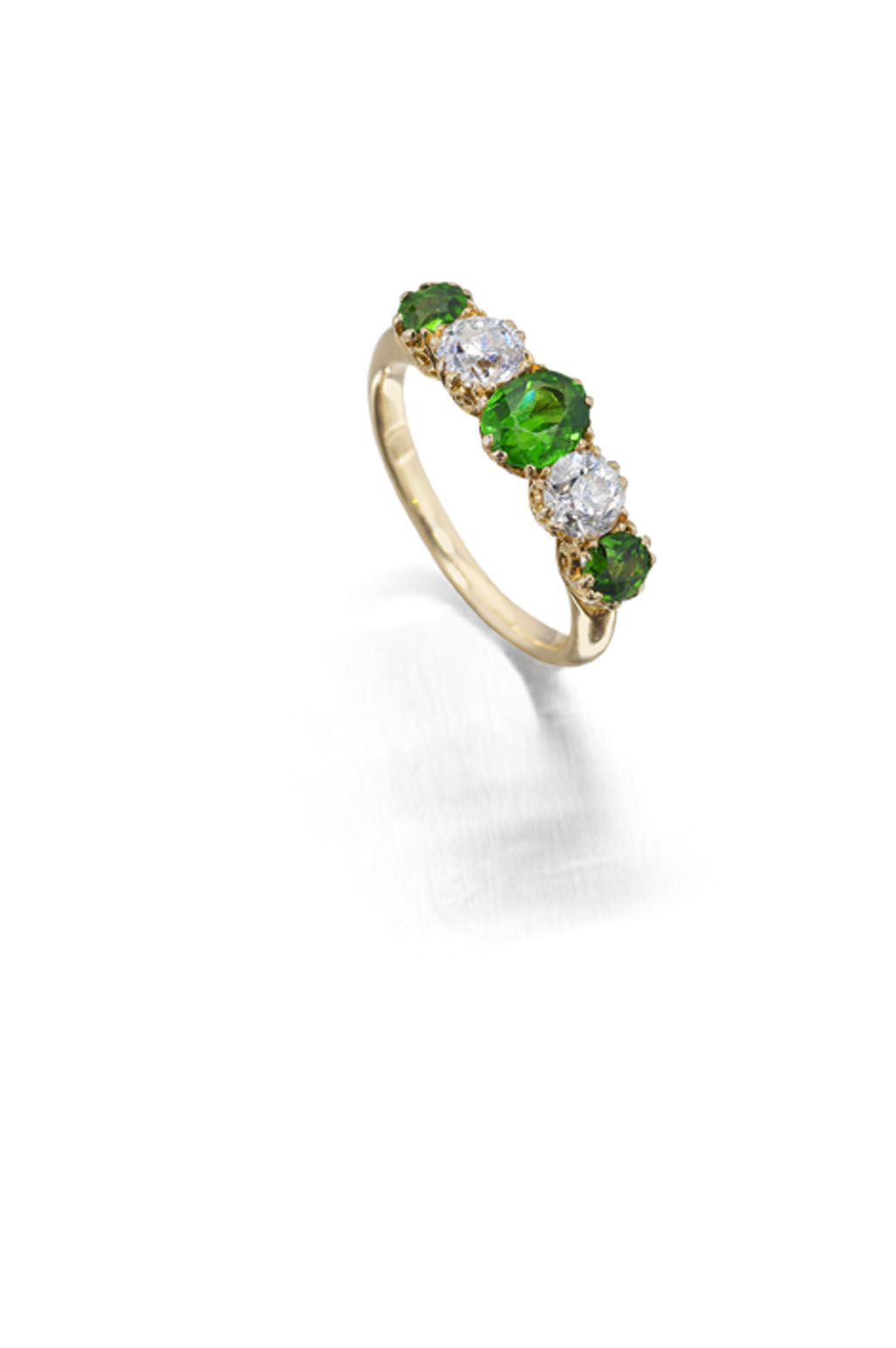 alternately claw set with oval cut demantoid garnets and old European cut diamonds