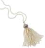 composed of uniform pearls measuring approximately 4mm diameter, suspending an old European cut diamond set cushion shaped drop, fringed by twenty-three row similar pearl tassels
