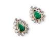 each designed as an ovoid cluster, collet set to the centre with a pear cut emerald within a semi-collet set surround of round brilliant cut diamonds, with post and hinged clip fittings