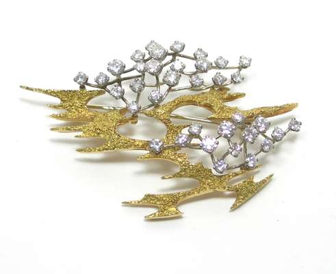 ASPREY & CO. LTD - a 1960's 18ct gold mounted diamond set brooch,