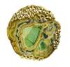 This brooch/pendant is off-set with diamonds and a large shaped circular variscite panel - a relatively rare phosphate mineral. Variscite is believed to be soothing, calming and balancing for both the body and mind. It is also said to aid the blood and heart, give emotional stability, self-confidence and bring abundance!