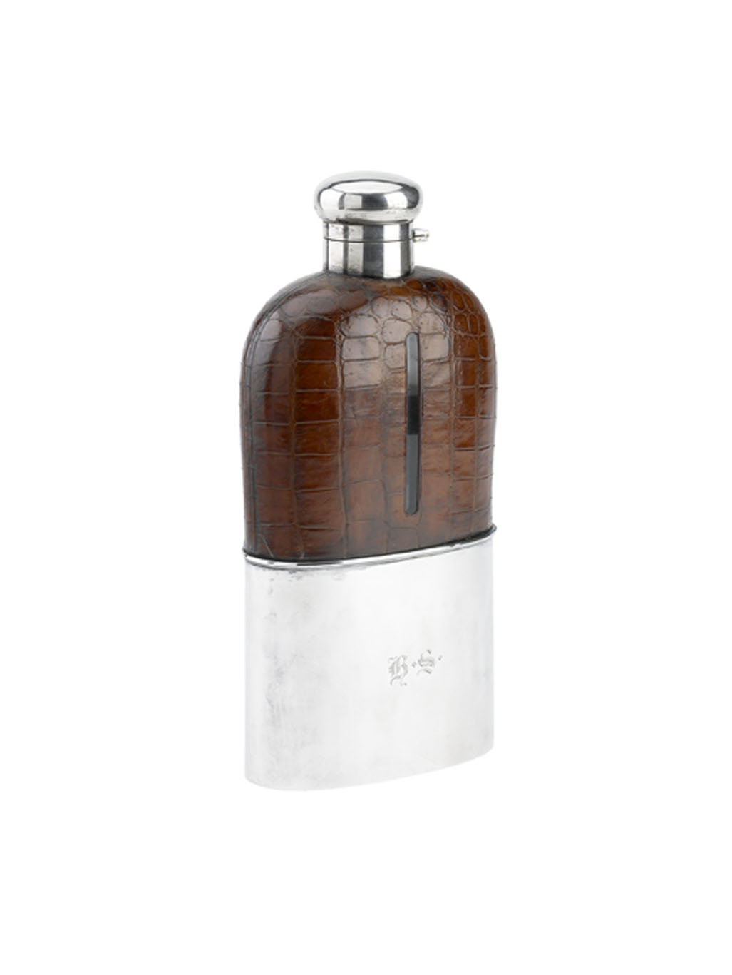 crocodile in good condition with good colour and only minor surface marks, , silver mounts with only light marks and wear, engraved initials crisp.