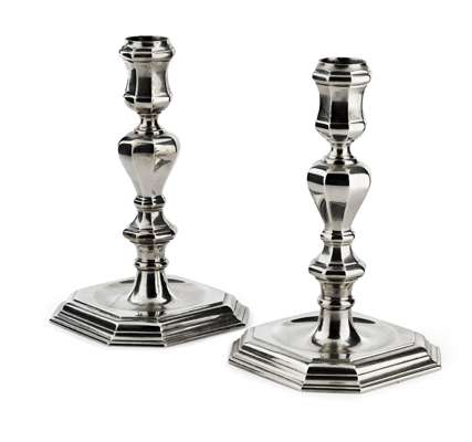 CAA / PRR London 1985 retailed by TESSIERS, LONDON, each of canted square outline, with inverted baluster form knopped column beneath a waisted capital