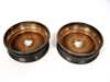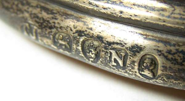 T James London 1808, of simple outline with slightly bellied bodies and gadrooned rim and foot, with turned wooden bases and circular boss to centre (2)