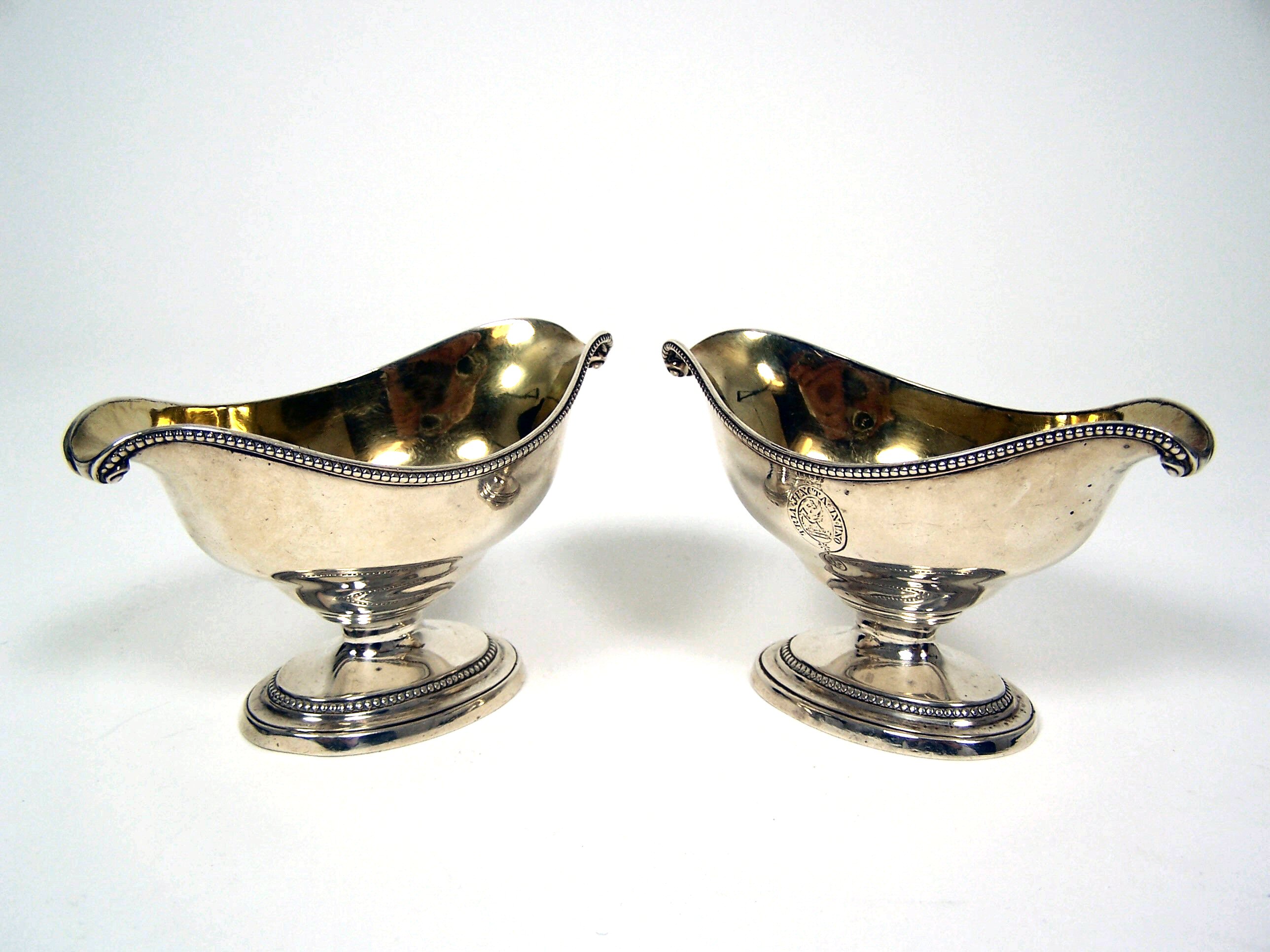 A pair of George III double lipped pedestal sauce boats