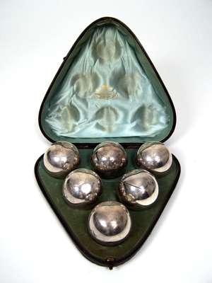 Gibson and Langman London 1896, of simple spherical form with engraved crest of a stag, contained in original fitted case