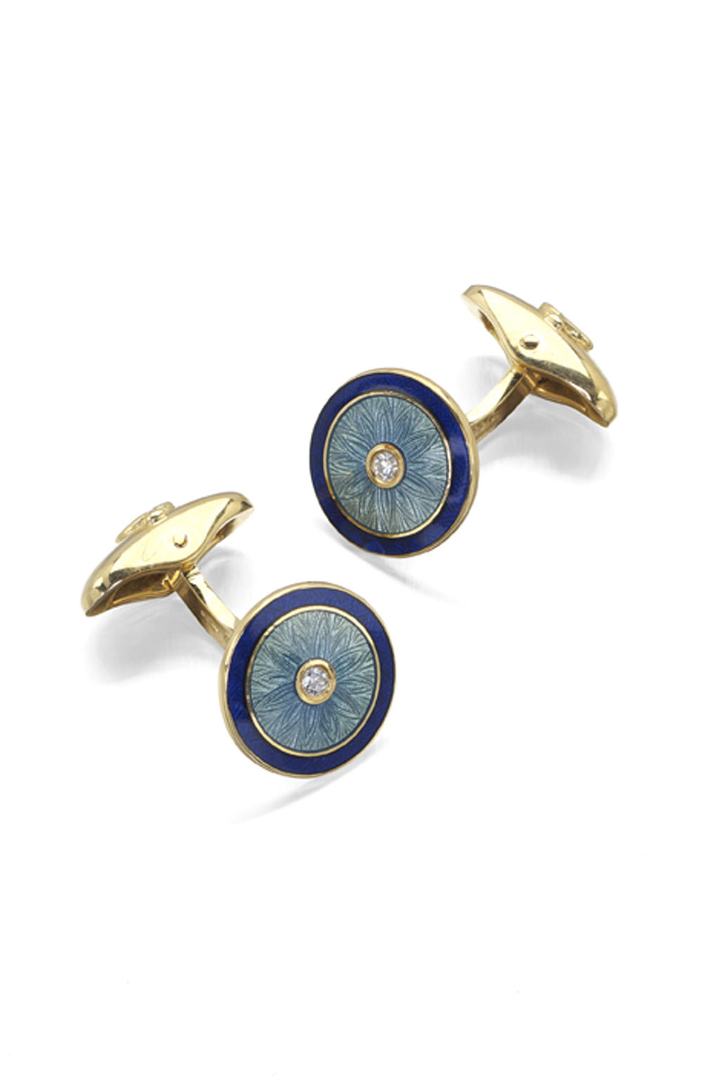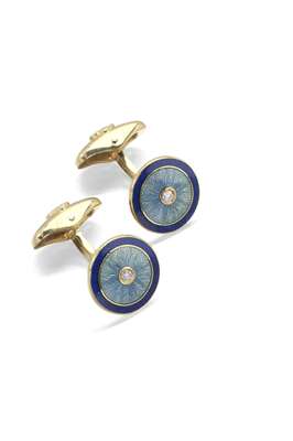 FABERGE - a pair of modern 18ct gold diamond and enamelled cufflinks by Victor Mayer,
