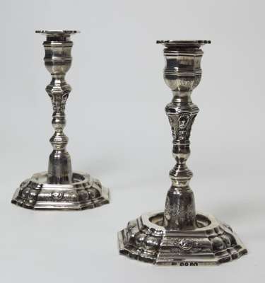 A pair of Victorian silver table candlesticks