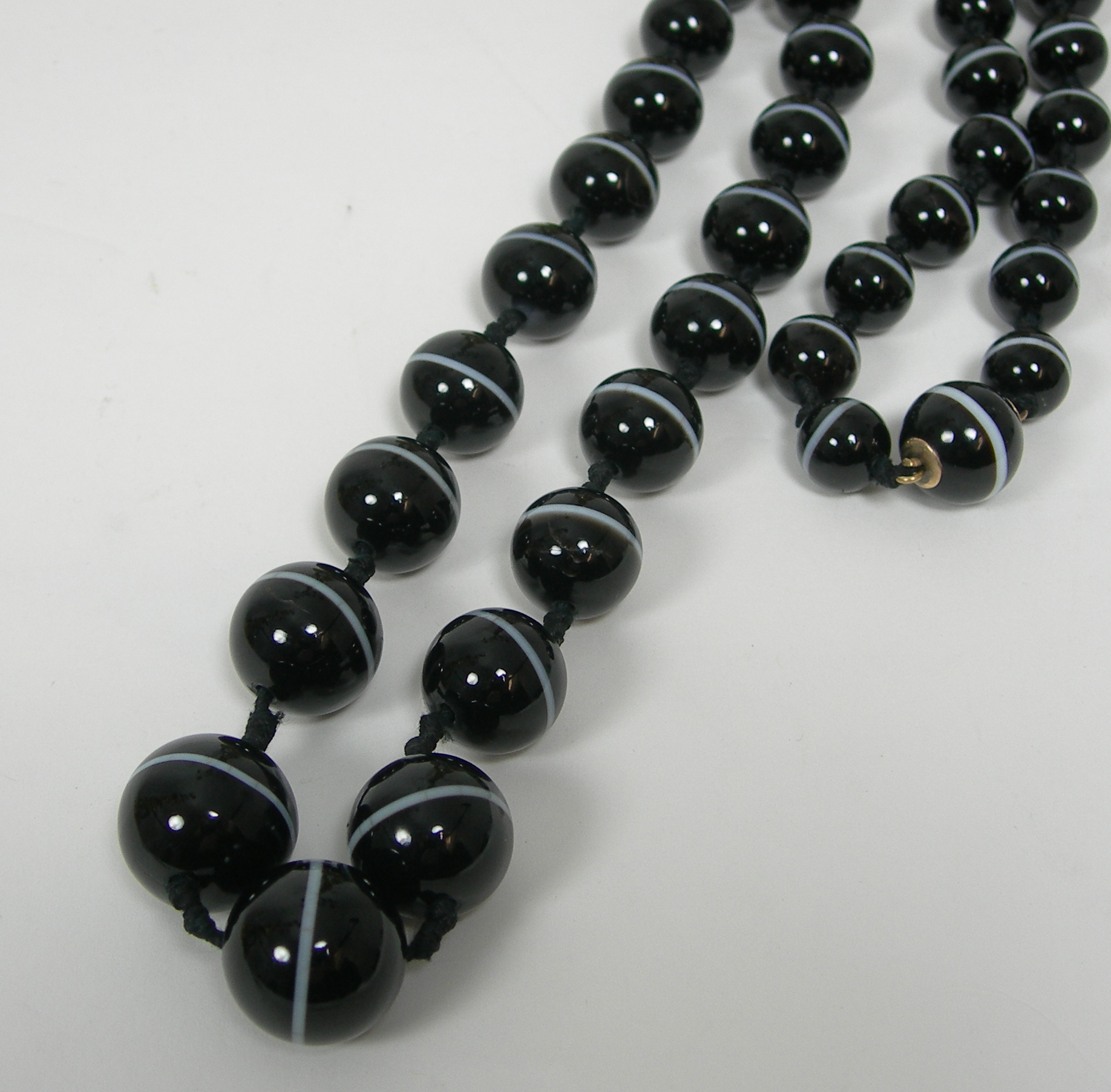 An Edwardian sard onyx bead necklace,