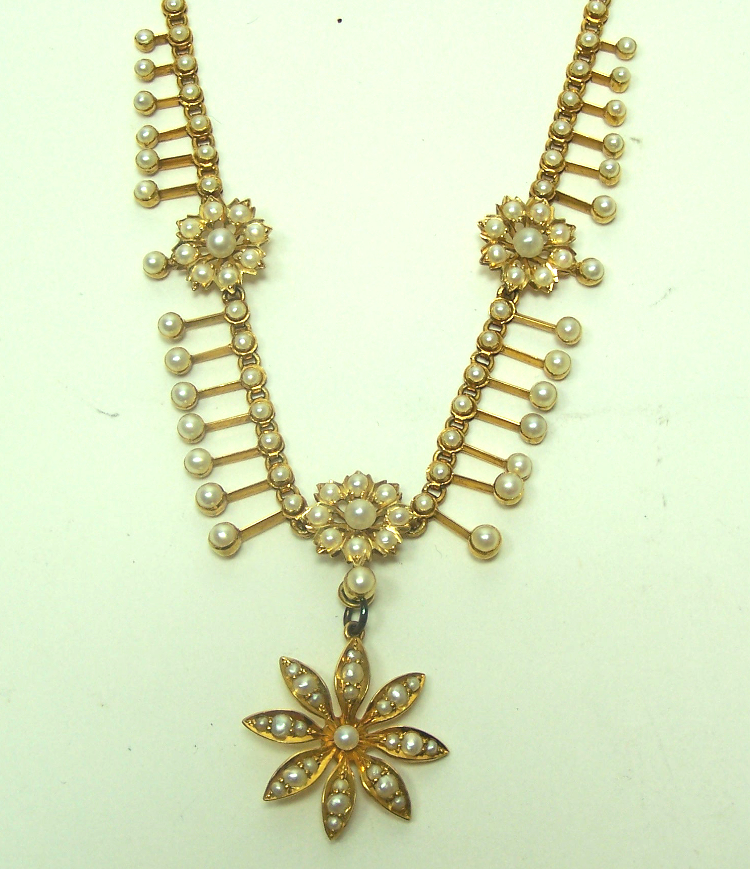 An Edwardian 15ct gold mounted seed pearl set necklace,