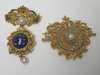 of shaped oval scroll design, the central cultured pearl measuring approximately 5mm diameter, within rose cut diamond borders; also a multi-gem set and enamelled brooch, of girandole design (2)