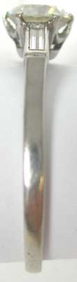 the central claw set round brilliant cut diamond, flanked to either side by a channel set baguette cut diamond