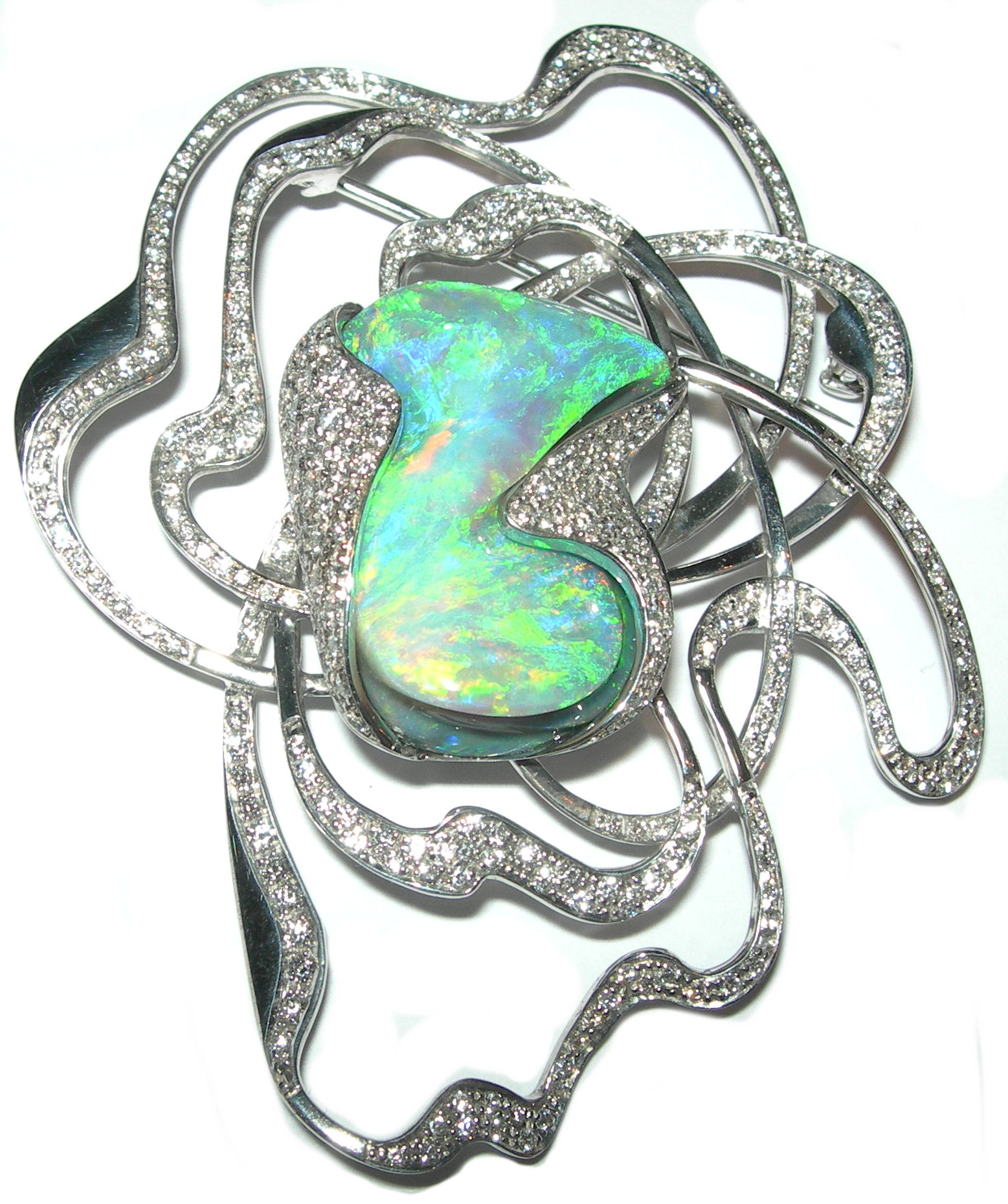 A stunning contemporary opal and diamond set brooch,