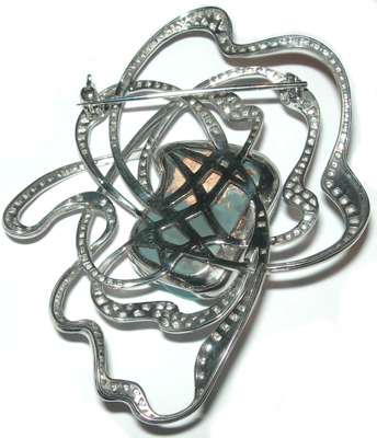 This attractive piece was made by Diamond Mounter Paul Wilson and commissioned by Fairhazel Design Ltd, of Hatton Garden, London. The brooch won The Goldsmith's Craft and Design Council's 2009 Silver Award in the Senior Diamond Mounting category in which the judges are seeking crisp, accurate and controlled work that demonstrates diamond mounting techniques, attention to detail and high skills.