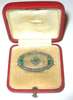 millegrain collet set to the centre with a square cut emerald, within a border of rose cut diamonds, to a frosted ground, flanked to either side by calibre cut emeralds, within an outer border of rose cut diamonds