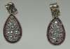 each with ovoid drop, pave set to the centre with a cluster of single cut diamonds, within a border of calibre cut rubies, with post and butterfly fittings