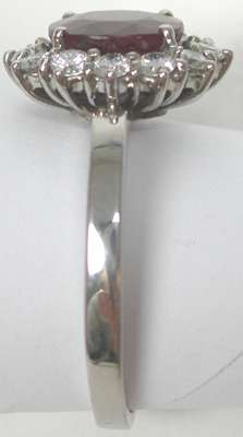 Height of ring to front 1.4cm, estimated weights: ruby 2.50cts; diamonds approximately 0.70cts total