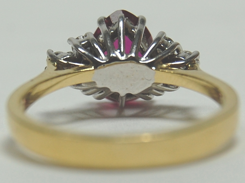 A modern 18ct gold mounted ruby and diamond cluster ring,